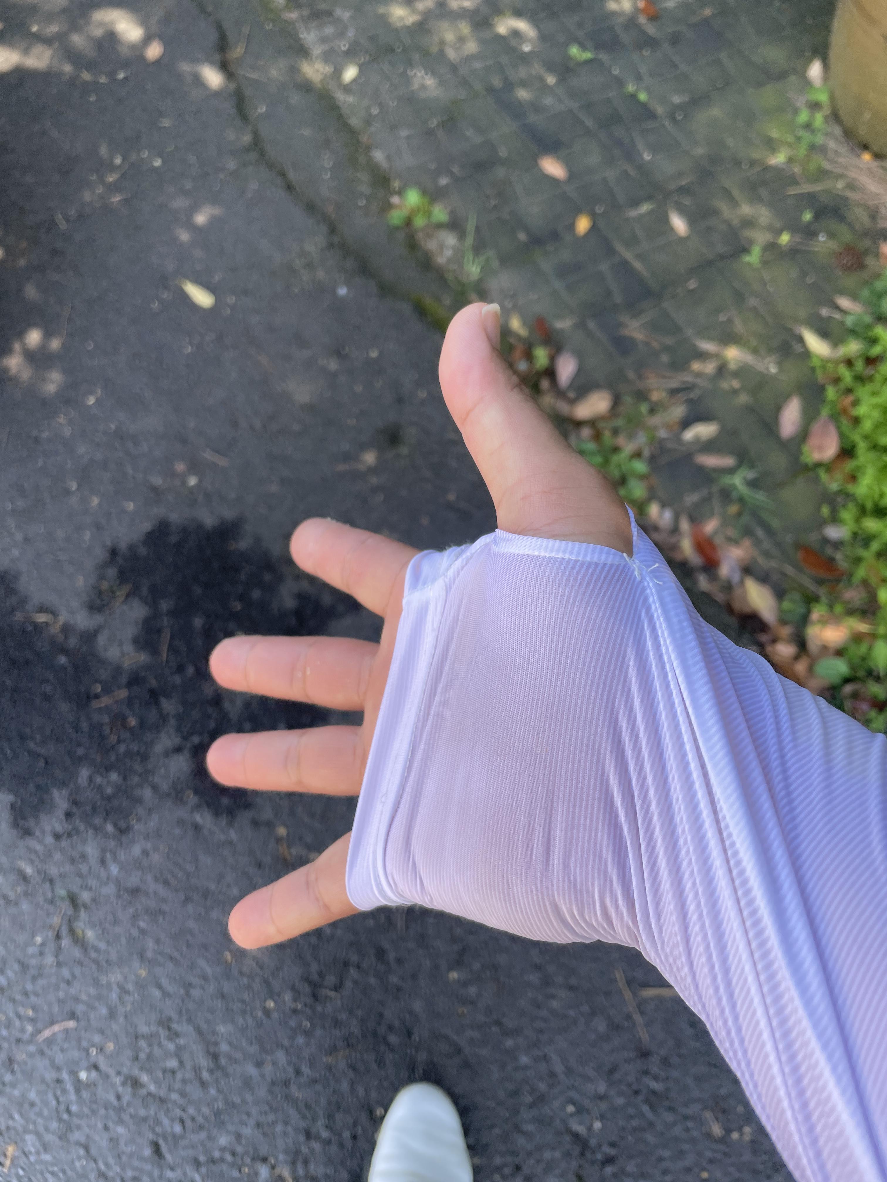 엄지손가락에 소매도 걸어서 손등도 보호합니다.