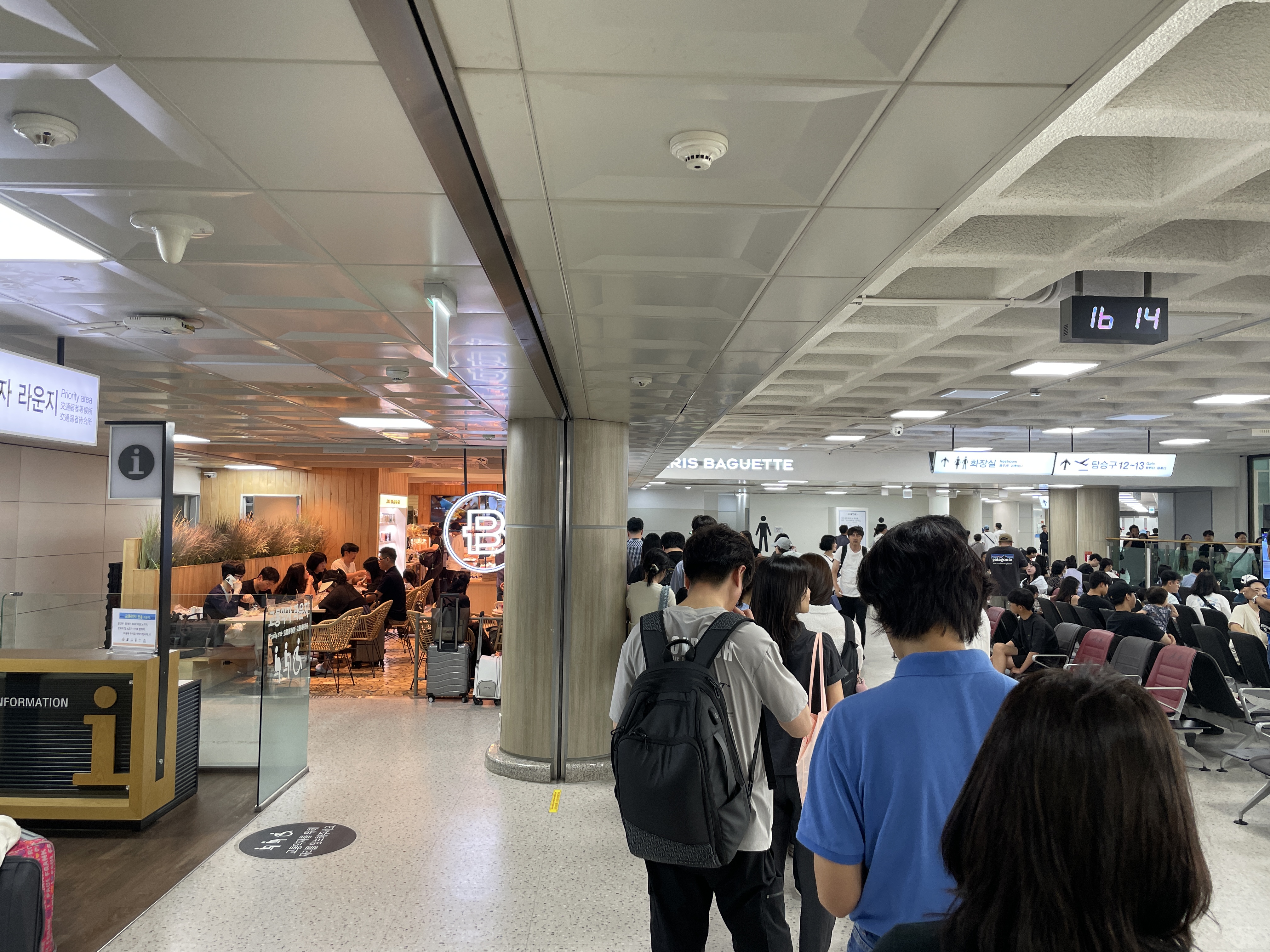 공항에서 대기하면서 긴 줄에 동참했습니다.