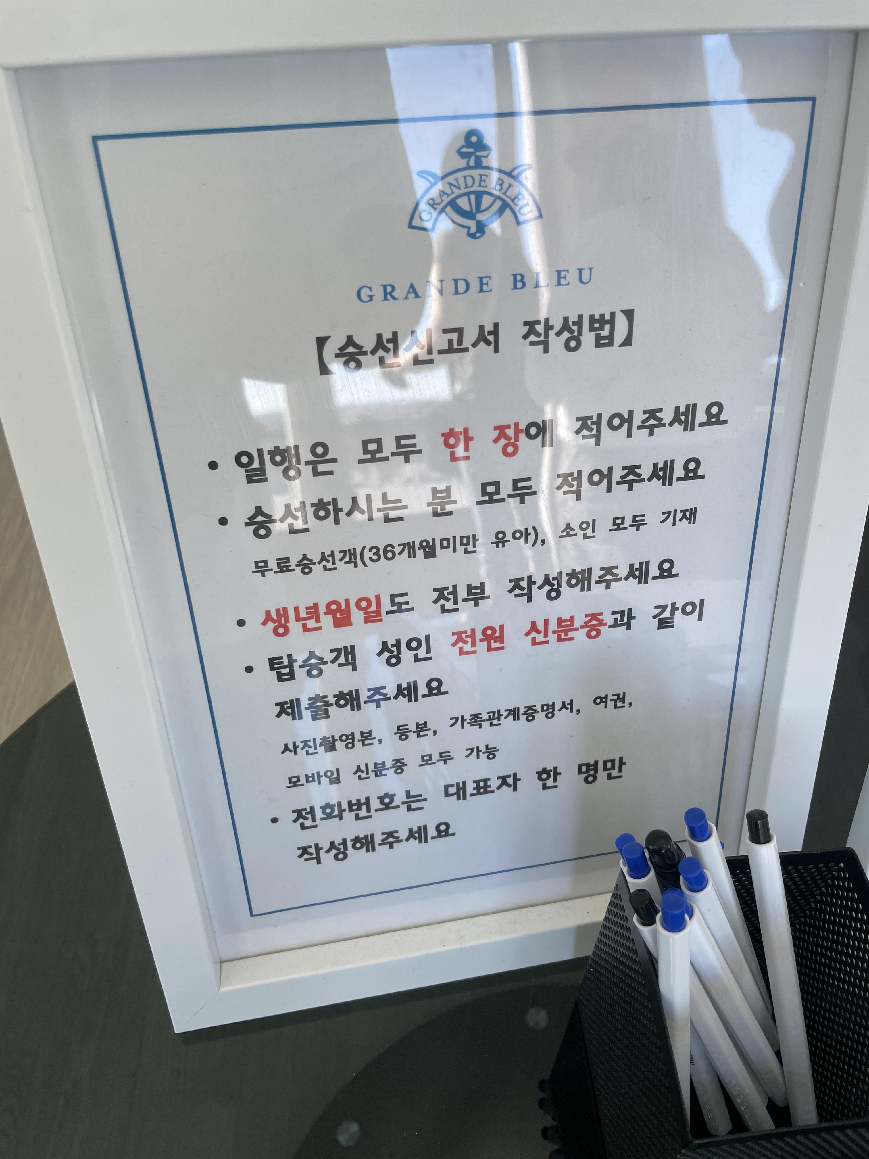 승선신고서를 작성해야하는데 본인 신분증이 반드시 필요하니 참고하세요~