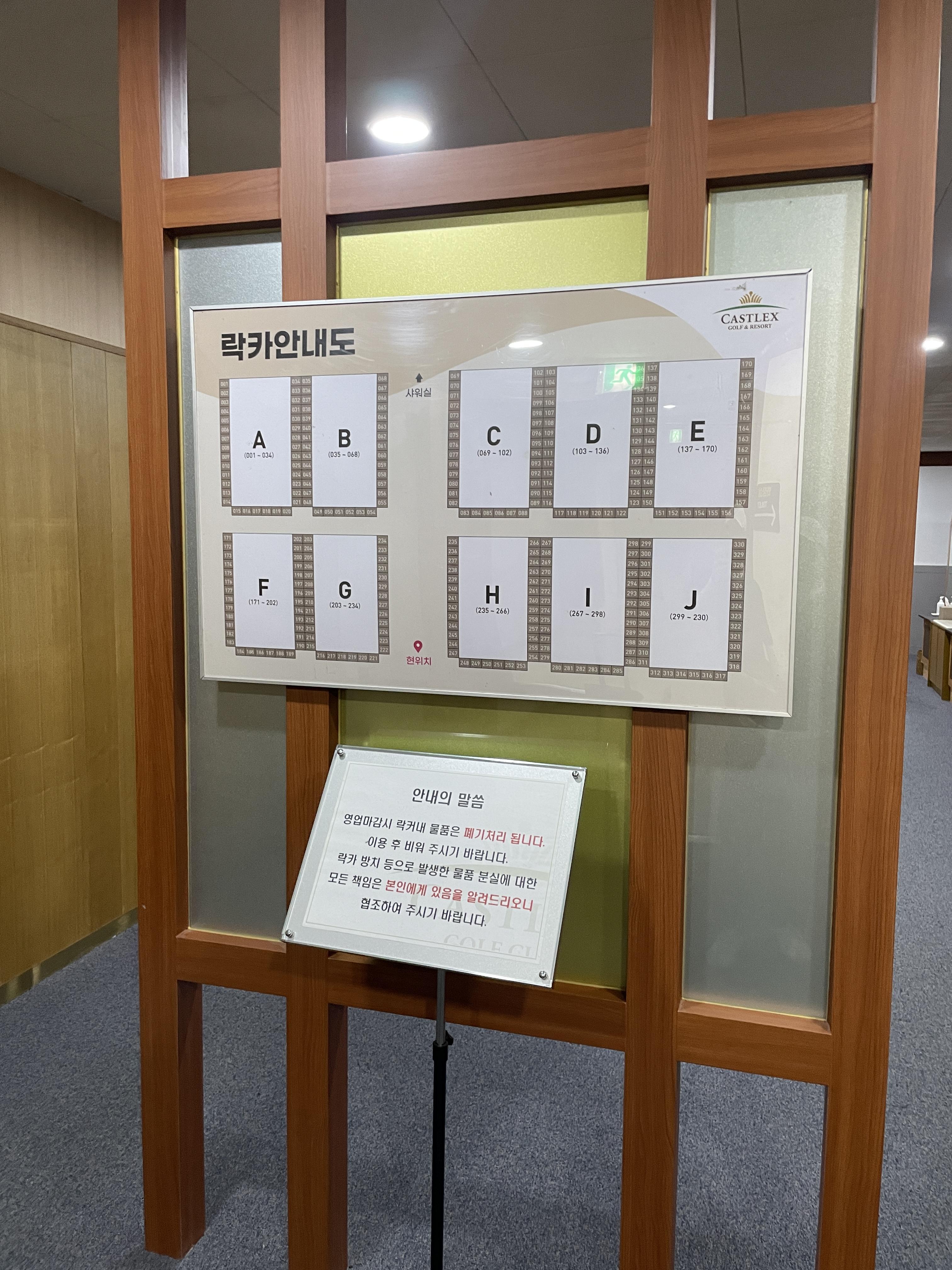 락카에 짐을 맡기고 라운딩을 준비합니다.