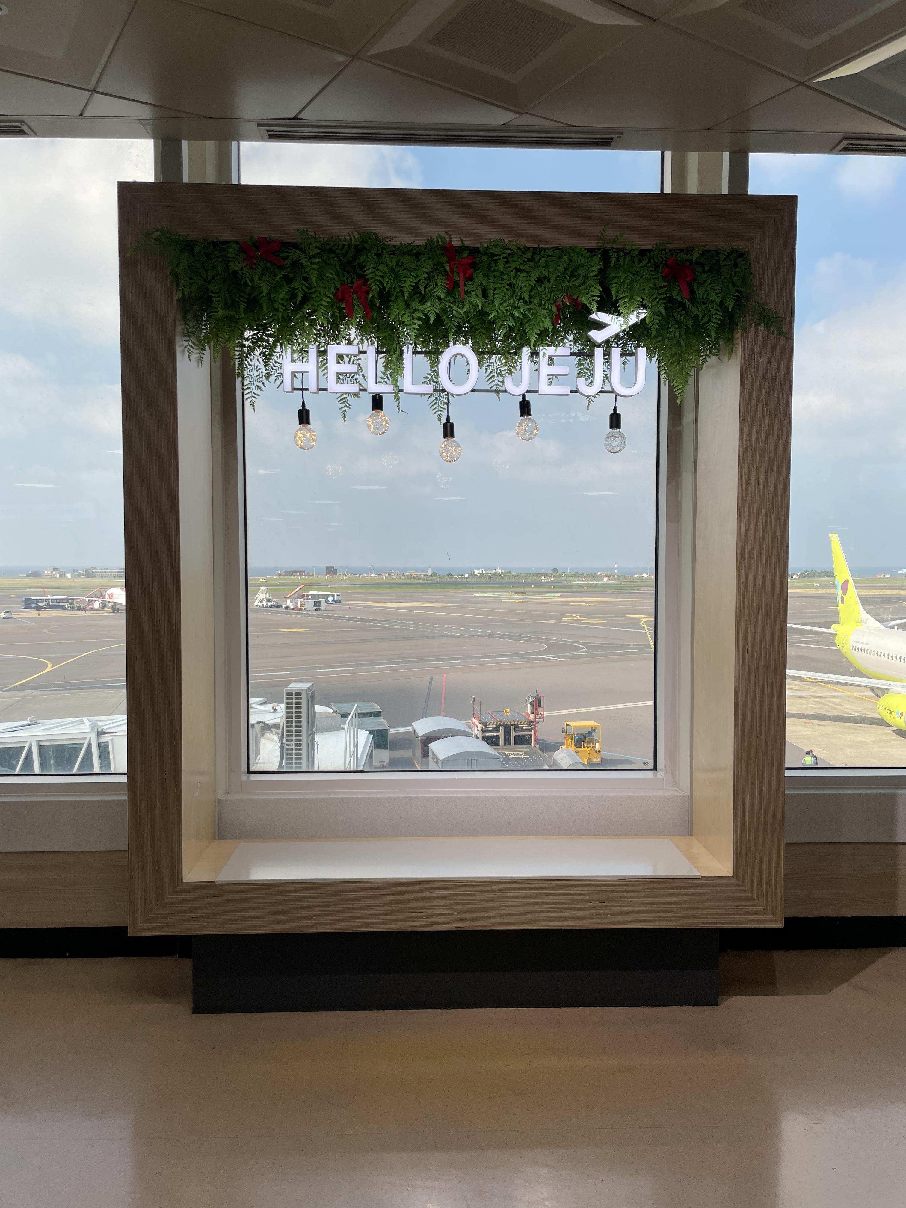 공항 창문에 붙은 레터링~