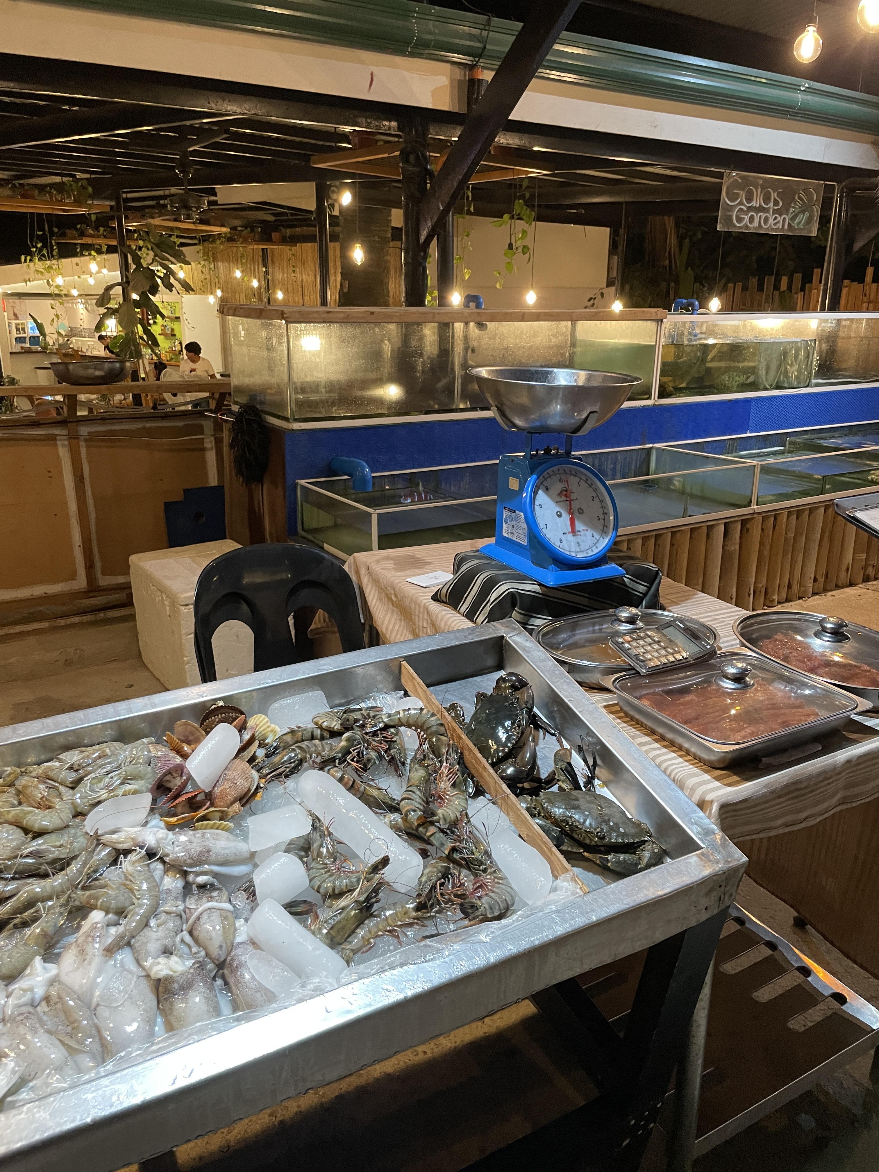여기 있는 해산물들을 저울에 달아서 요리방법을 선택하면 됩니다.