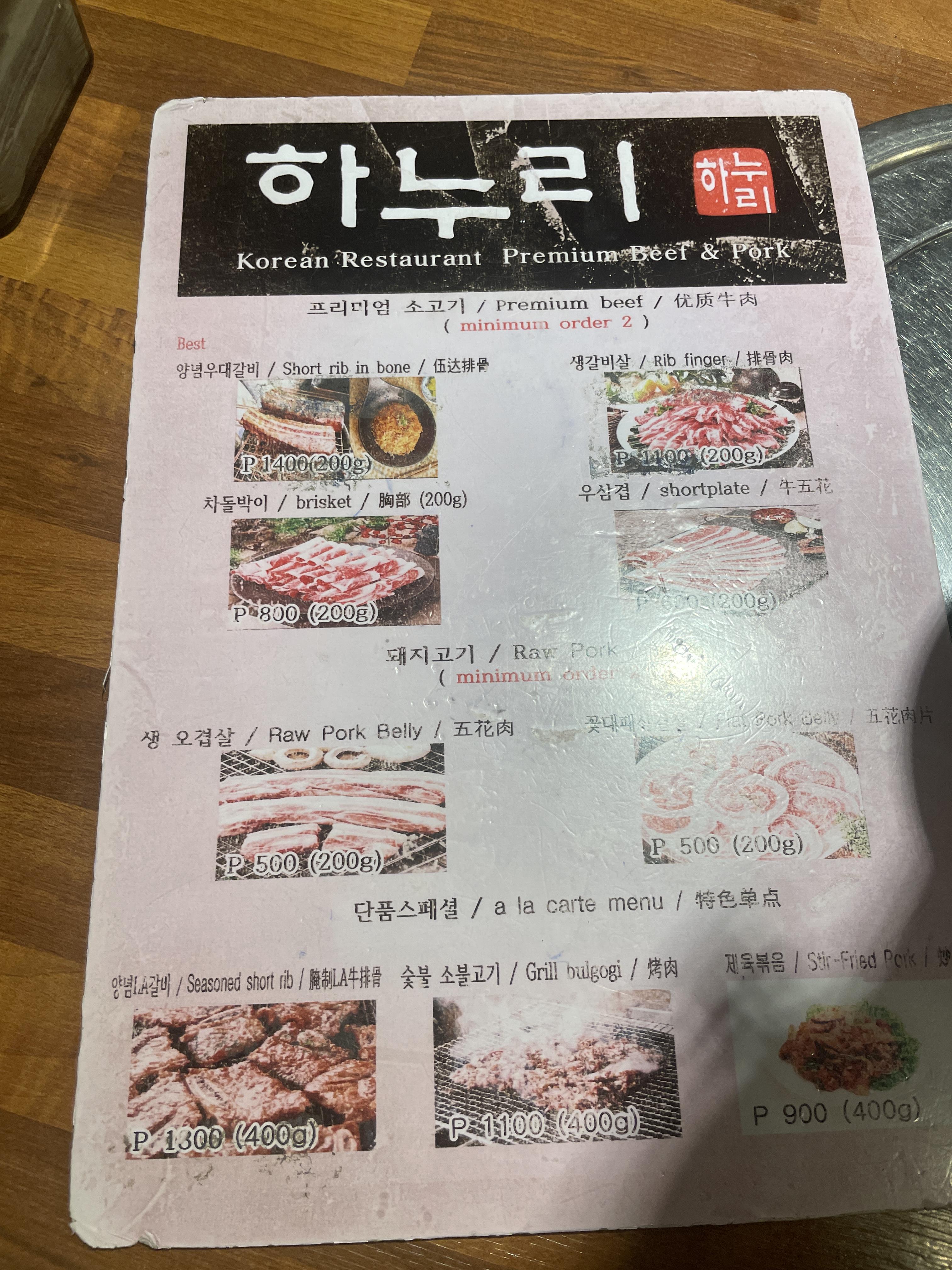 메뉴는 거의 한국 식당 수준입니다~