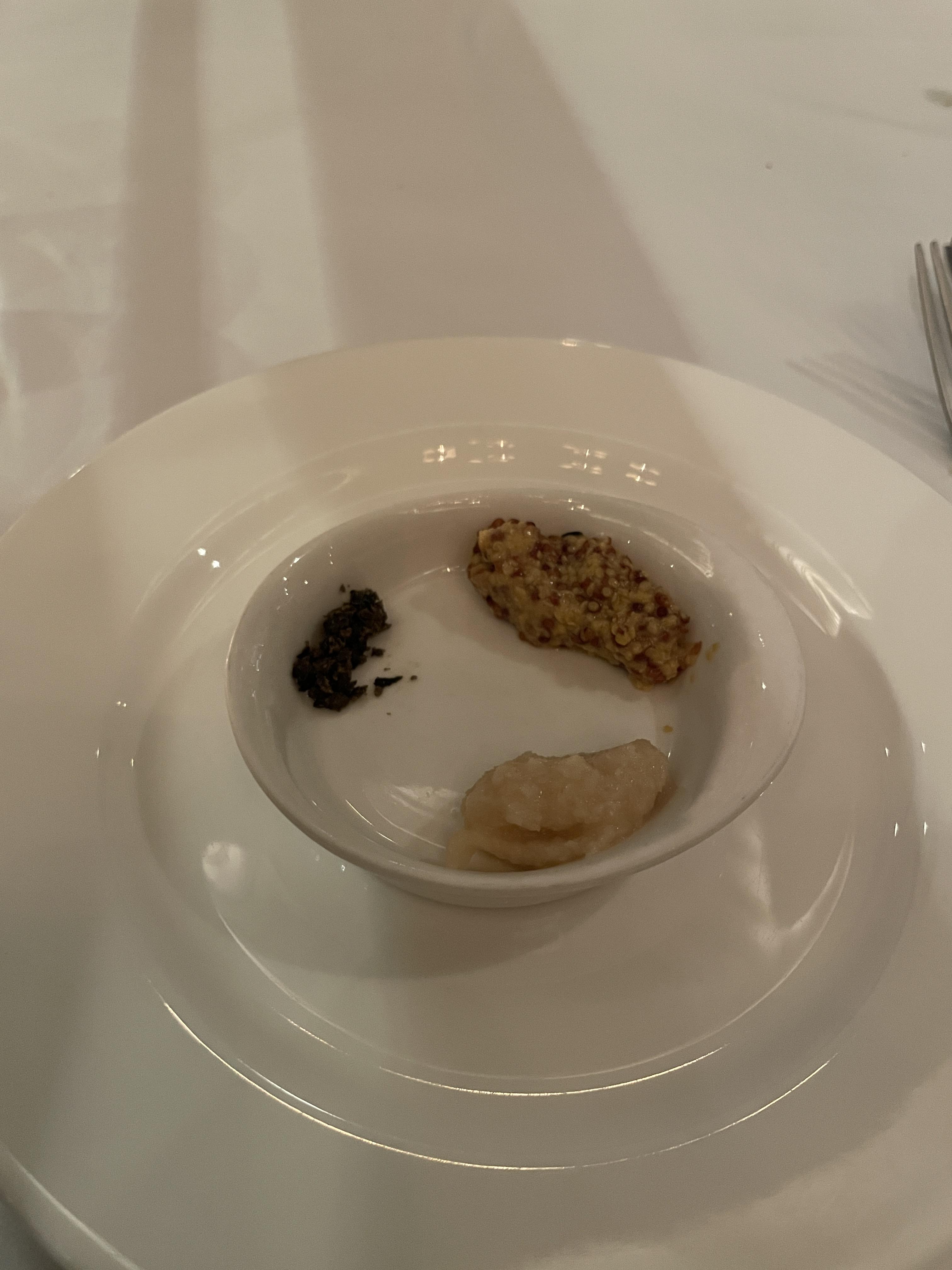 특별한 건 없고~ 후추, 홀그레인 머스타드, 래디쉬 소스 정도나 나오네요~