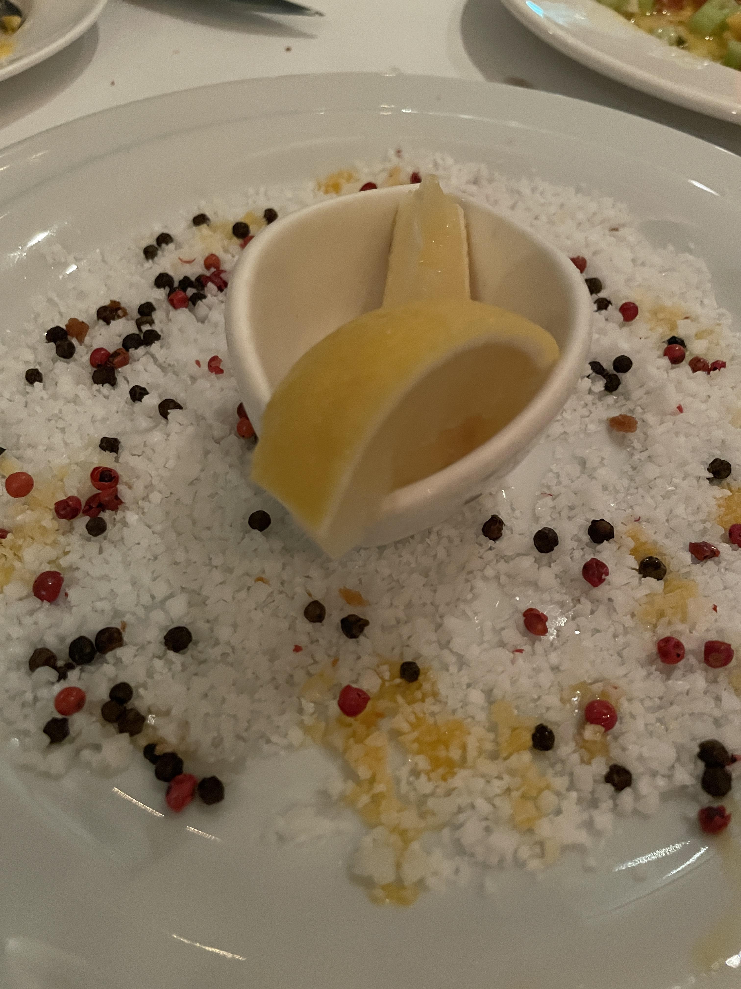대하 소금구이처럼 바닥에는 소금과 통후추가 깔려 있군요~