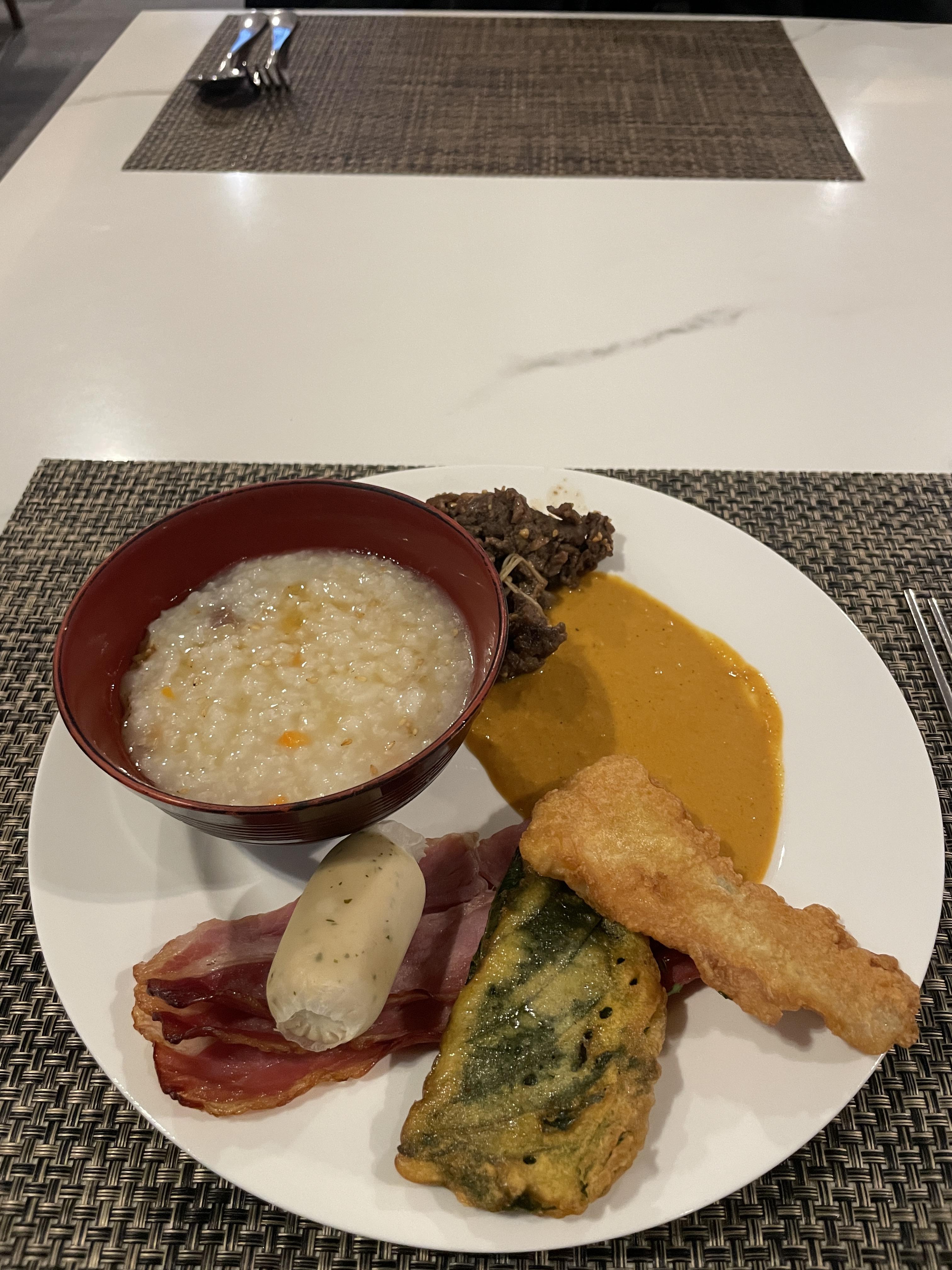 첫 접시, 한식과 양식, 인도식을 망라한 하이브리드 조식입니다~
