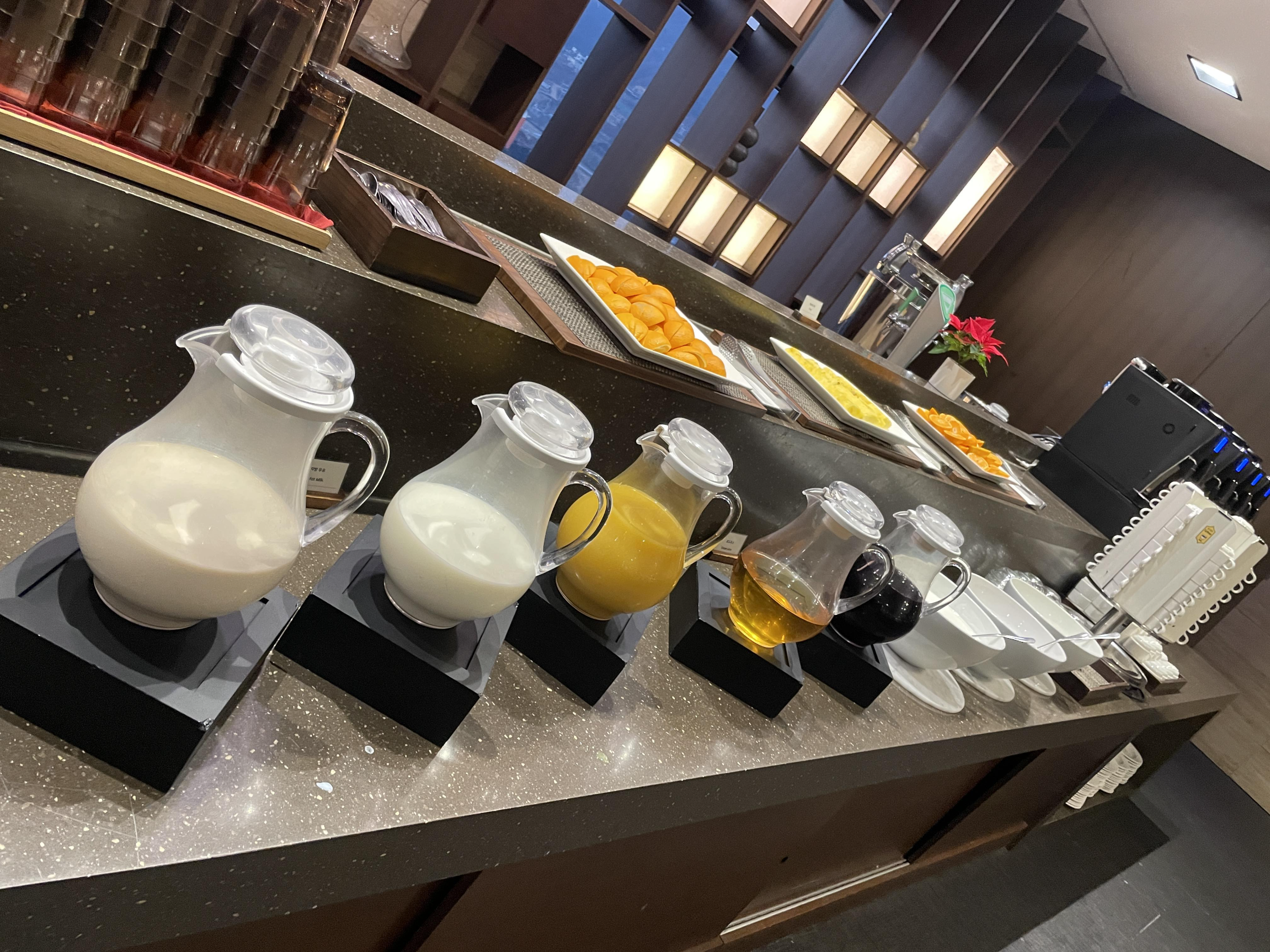 종류별 우유, 그리고 주스들, 그리고 커피~